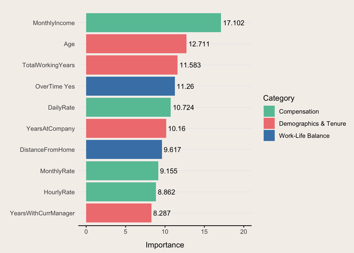 - Monthly Income is the most important factor, meaning fair salaries matter a great deal to employees.